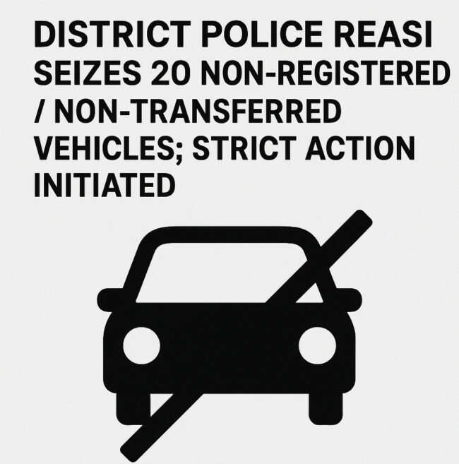 SSP Reasi has urged the public to avoid using unregistered or improperly transferred vehicles, emphasizing that such violations attract legal penalties. He further cautioned that strict action will continue against those found violating traffic laws, including seizure of vehicles and legal proceedings under relevant sections.