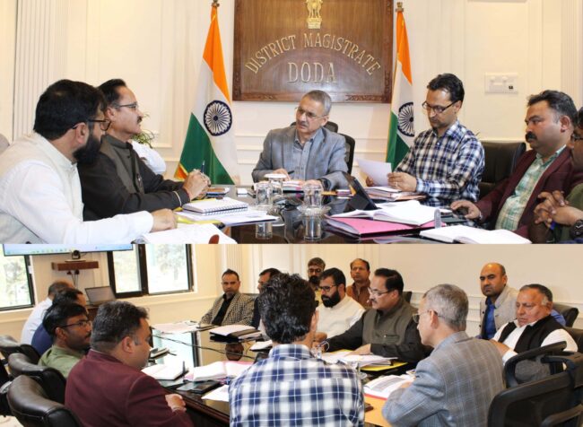 DODA, MARCH 11: District Development Commissioner (DDC) Doda, Krishan Lal today reviewed the progress and implementation of Jal Jeevan Mission (JJM) and Swachh Bharat Mission (SBM) initiatives in the district here at a meeting of the District Water and Sanitation Mission (DWSM) held in his office chamber.