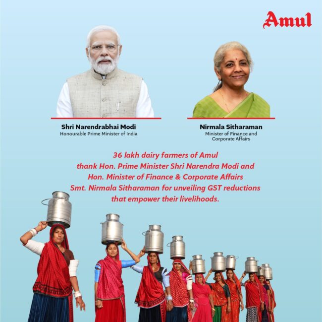 The #NextGenGST reforms are another step towards empowering lakhs of dairy farmers, boosting value addition and making dairy products more affordable for every household.”