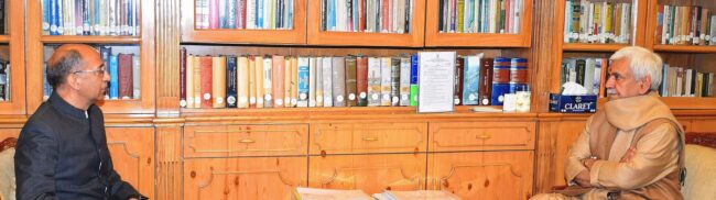 Srinagar, March 15: Shri Nasir Aslam Wani, Advisor to the Chief Minister, UT of Jammu Kashmir called on Lieutenant Governor Shri Manoj Sinha, today.