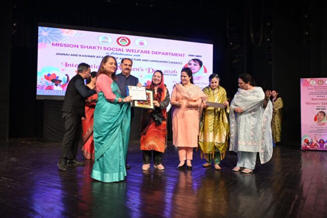 The Minister made these remarks while addressing grand International Women’s Day celebrations at Abhinav Theatre here today, organised by Mission Shakti in collaboration with J&K Academy of Art, Culture and Languages (JKAACL) under the theme ‘Give to Gain’.